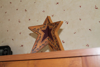 I got this cute 3D star the other weekend. I decided the colors looked good in the kitchen so I put it on top of the pantry cabinet.